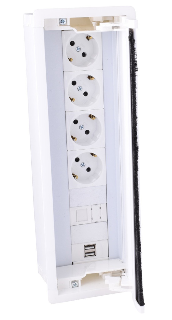 PRIZA INCASTRABILA CU PERIE 4 SCHUKO+2 USB+1 LAN - ALB